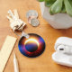 Um eclipse solar (a lua que cobre o sol), com o típico efeito "lente-flare" em azul.
