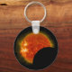 A sombra escura da lua cruza em frente ao sol durante um eclipse solar capturado no espaço e aprimorado nessa imagem.