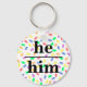 Chaveiro Ele pastel arco-íris sprinkles pronome
