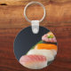 This refined sushi keychain features glistening nigiri resting gracefully on a bamboo leaf against a deep black background. A minimalist and artistic nod to Japanese food culture, it's the perfect little charm to add joy and style to your daily essentials.