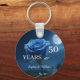 Um elegante chaveiro de acrílico com um design de rosa de aniversário azul. Personalize com nomes e datas especiais por uma cuidadosa consideração. Perfeito para casais, pais ou amigos celebrando sua história de amor.