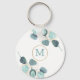 Esta cadeia-chave apresenta um design botânico de folha de eucalipto de cor aquática moderno com elementos de ouro falsos. Personalize com seu monograma.