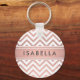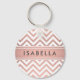 Acessem suas chaves em estilo com um chaveiro moderno chic. Design apresenta um padrão e uma faixa de zag, cor-de-rosa bonito, cor-de-falso, folha de ouro rosa, e seu nome ou outro texto personalizado em uma simples fonte de fotografia de cinza escura. Este acessório elegante e moderno faz um presente na moda para ela. Perfeito como um favor de chá de panela ou festa de solteira, ou como uma ideia de presente de dama de dama de honra.
