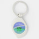 Bonito chaveiro para um 55º aniversário com a imagem de dois corações verdes esmeraldas flutuando na água sob um arco-íris. O texto personalizável diz "55 anos".