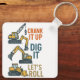 Máquina de construção divertida design com grua, escavadora e escavadora, ao lado das frases Crank It Up, Dig It, Lets Roll.