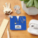 A enfermeira criativa mantém o chaveiro com esfregões azuis e canivete suíço no bolso. Editar texto para adicionar nome.