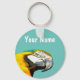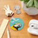 Fotografia engraçada de um papagaio (arara), sobre fundo teal, que você pode personalizar com seu próprio nome ou texto. Você pode alterar a cor de fundo do metal em qualquer cor que quiser, personalizando o produto.
