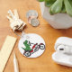 Maravilhoso e divertido dinossauro verde t-rex cavalgando um design de arte original de moto vermelho. Também é possível adicionar texto personalizado e alterar a cor do plano de fundo ao fazer o pedido.