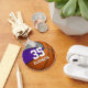 Este chaveiro de basquete feminino com cores roxo e cinza personalizadas apresenta um gráfico de basquete com nome de jogador e número de camisa facilmente personalizável - dois dos painéis do basquete têm uma aparência artística, um misturado com roxo e o outro misturado com cinzas - de katz_d_zynes