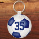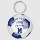 Este teclado de futebol fácil de personalizar apresenta a imagem realista de uma bola de futebol que tem painéis azuis e brancos, sobre os quais você pode personalizar o nome do atleta, número de camisa, nome da equipe e mascote e ano na frente e letra de monograma ou varsidade no verso - por katz_d_zynes