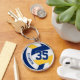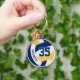 Este chaveiro para jogadores de vôlei, simplesmente projetado, apresenta a imagem realista de um vôlei azul, dourado e branco, sobre o qual você pode personalizar o nome do jogador & jersey number em uma letra estilo varsity - por katz_d_zynes