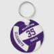 Este chaveiro de desportista de vôlei tematizado para raparigas ou rapazes apresenta um vôlei roxo e branco com aspecto realista, sobre o qual pode personalizar o nome do jogador & jersey number mais o nome da escola ou do clube e o nome do mascote numa letra estilo de letra de varsidade - por katz_d_zynes