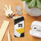 Este chaveiro de vôlei para raparigas ou rapazes apresenta a imagem abstratamente sobredimensionada de um vôlei preto, dourado e branco na frente, sobre a qual se pode personalizar o número de camisa do atleta - no verso, o nome do atleta sobrepõe-se a um fundo negro sólido - de katz_d_zynes