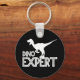 Silhuette de um velociraptor com texto Dino Expert. Chaveiro para amantes de dinossauros.