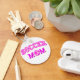 Bola de futebol desenhada à mão e texto. Botões personalizados com designs exclusivos. Design de cor rosa. Ideia para mães de futebol.