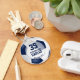 Este chaveiro de futebol esportivo para raparigas com cores azuis e brancas apresenta uma bola de futebol simples e clássica com painéis azuis e brancos - personalize o nome do jogador e o número de camisa mais o nome da escola e do mascote da equipe - por katz_d_zynes