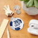 Este chaveiro de futebol esportivo para rapazes com cores azuis e brancas apresenta uma bola de futebol simples e clássica com painéis azuis e brancos - personalize o nome do jogador e o número de camisa mais o nome da escola e do mascote da equipe - por katz_d_zynes