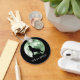 Uma silhueta de um lobo solitário uivando em uma lua luminescente. O design está disponível em várias cores.