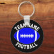 Um chaveiro de futebol azul legal e personalizável para jogadores de futebol, treinadores, equipes e fãs com cores azuis, com um gráfico de futebol azul no centro e a opção de mudar a cor de fundo para qualquer cor que você quiser! Escreva apenas o nome da sua própria equipe de futebol ou qualquer outro texto (nome da escola, slogan da equipe, mascote, nome do jogador de futebol, etc.) na caixa de texto personalizada. Em seguida, clique no botão [Personalizar] e use a ferramenta selecionador de cores para alterar a cor de fundo (atualmente definida em preto) para qualquer cor que você quiser! Faz uma bela ideia de presente para amantes de futebol com cores azuis do time, e barato suficiente para conseguir um para cada jogador e treinador do time!