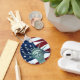 Estátua da Liberdade com chaveiro de fotografia de fundo de bandeira americana