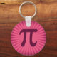 Diversão de chaveiro. Bonito coral e fundo cor-de-rosa que se assemelham a uma explosão de banda desenhada com um símbolo pi de número castanho escuro a negrito. Boa chaveiro para um orgulhoso geek de matemática e ciência. Também faz um presente barato para um professor de matemática.