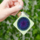 A design apresenta uma espiral central mesmerizante que desenhar o olho para dentro, combinando profundos púrpuros, azuis vibrantes e tons verdes para um olhar rico e dinâmico. Linhas e texturas finamente detalhadas adicionam profundidade e complexidade, evocando um senso de mistério e de outra linhagem do mundo. O padrão natural e fluido e o contraste entre a espiral escura e a borda muda aumentam o impacto visual. O equilíbrio simétrico e os elementos textuais sutis acrescentam harmonia e interesse táctil.