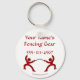 Uma etiqueta de chaveiro divertida para a bolsa de equipamento de esgrima, mochilas e muito mais. Digite seu nome e/ou texto de sua escolha e inclua seu número de telefone ou e-mail, se desejar. Uma forma excelente de reconhecer rapidamente a sua bolsa no clube, na venda ou nos torneios. Outras cores/estilos também disponíveis. Faz um excelente, um presente de vedação único!