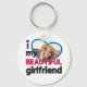 Esta adorável chaveiro é o presente ideal para qualquer namorado ou namorada apaixonado em ocasiões como Dia de os namorados ou aniversários. A legenda diz "Eu amo (coração) meu namorada LINDO" em fontes modernas cor-de-rosa-preto e escuro. Facilmente personalizável adicionando uma foto personalizada em um grande quadro azul em forma de coração.