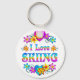 Uma bela maneira de mostrar seu amor pelo esqui. Aproveite esta design divertida com corações coloridos, flores e as palavras - Eu adoro esquiar.