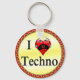 Chaveiro Eu adoro techno com um coração vermelho engraçado