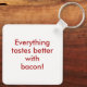 Amantes do café da manhã! Comece o seu dia com um sorriso e um sorriso com a nossa cadeia de chaves do Dia Bacon! Eu Adoro Bacon! Tudo tem gosto melhor com bacon. Ou personalize com seu texto. Para chefs, torradas de churrasco e cozinheiros divertidos. Celebre o Dia Nacional do Bacon em 30 de dezembro.