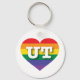 Este chaveiro apresenta um coração do orgulho arco-íris sobreposto pelas letras maiúsculas, brancas, negros, UT, a abreviação oficial de Utah, o estado das colmeias. Mostre suas cores verdadeiras, apoie a igualdade do casamento e comemore a orgulho gay.