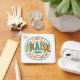 Design cor e pacífica com uma cena de outono/outono com texto decorativo e folhas de outono. O texto de inspiração colorido diz: "Irei elogiá-lo em todas as estações". Esse design está disponível em uma grande variedade de produtos.
