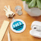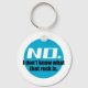 Esta chaveiro apresenta um logotipo azul com o texto "Não. Não sei o que é aquela rocha." Para aqueles que recebem pedidos demais para dar nomes a rochas misteriosas.