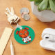 chaveiro verde compacto e adorável com um triste cão robô marrom numa situação humorística. O cão metálico futurista é mostrado sentado com uma expressão forlorn, segurando um pequeno sinal que diz: "Eu não sou um robô", pois ele luta com um prompt CAPTCHA de um site