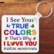 Citação inspiradora de "Eu vejo as suas verdadeiras cores, é por isso que te amo" com belos quebra-cabeça autistas para apoiar e amar alguém com autismo.