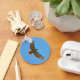 Foto de um falcão de cauda vermelha em voo com suas asas esticadas completamente contra um belo céu azul. As marcas do falcão são muito claras e distintas nesta fotografia. Esta imagem falsa é de um raptor voando na natureza como a natureza pretendia.