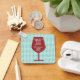 Diversão chaveiro para amantes de vinho apresenta vinho tinto com uma citação engraçada que diz: "A felicidade vem da paz interior. A paz interior vem do vinho" em fundo de gingham azul e branco.
