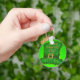 Um Chapéu verde com um Balde brilhante e colorido com um fundo verde que está em um CHAVEIRO.
