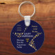 Na moda azul e ouro personalizados HAPPY HANUKKAH chaveiro para desejar a sua família e amigos um Hanukkah feliz. A design mostra texto que diz HAPPY HANUKKAH em tipografia branca no centro, com PEACE, LOVE & JOY em tipografia dourada em um canto, e também escrito em HEBREW no outro canto. Isto é colocado sobre um fundo de estrelas douradas contra o azul-da-meia-noite. O texto do espaço reservado é personalizável, para que você possa criar sua própria saudação e adicionar seu(s) nome(s). Ideal como guardanapos ou doações de favores. Outros cartões Chanucá, decoração domiciliar e presentes estão disponíveis na Coleção HANUKKAH por Designs Berean.