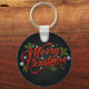 Uma design de Natal festiva com o texto "Feliz Natal" em vermelho e verde vibrantes, com uma paisagem de inverno nevada ao fundo. A design evoca um sentimento de calor, alegria e a magia da época de férias.