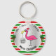 Zaubershirts Design - Uma engraçada design de Natal Feliz, com um flamingo Xmas hilário e uma tradicional armação listrada vermelha e verde. Personalize facilmente este chaveiro para o seu nome e/ou texto. Para personalização adicional, solte-me facilmente uma mensagem abaixo. Teria todo o prazer em tornar realidade os vossos desejos de design! www.zazzle.com/store/zaubershirts www.zazzle.com/store/youropea_papeterie