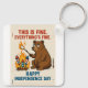 Esta design humorística mostra um urso angustiado tentando assar um marshmallow em uma fogueira movida por fogos de artifício, com a legenda "ISTO É BOM. TUDO ESTÁ BEM." Abaixo, "FELIZ DIA DE INDEPENDÊNCIA" acrescenta um toque de celebração irônica. Este gráfico é perfeito para aqueles que desfrutam de momentos de férias brincalhões. Obrigados muito.