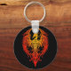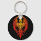 Esta design de fênix vermelha e amarela é decorada com espirais tribais e padrões de pontos correntes. As asas simétricas estendem-se de cada lado do padrão enquanto a cauda cai pelo centro formando um ponto na base. As linhas em negrito são destacadas, que criam um brilho sutil na superfície. Esta fênix agressiva, mas elegante, senta-se sobre um fundo negro puro que cria uma bela e na moda chaveiro design.