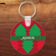 Este chaveiro bonitinho e festivo apresenta árvores de Natal verdes e vermelhas com saudações e nomes personalizáveis nas costas.