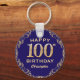 chaveiro de Quadro Glitter Azul e Dourado do Marinho 100º Festa de aniversário. Para mais personalização, clique no botão "Personalizar" e use nossa ferramenta de design para modificar este modelo.