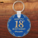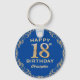 Chaveiro com moldura brilhante azul e dourada para festa de 18º aniversário. Para personalização adicional, clique no botão "Personalize" e use nossa ferramenta de design para modificar este modelo.