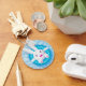 Bonito coelho branco se divertindo em uma piscina de natação.