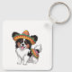 Chaveiro Fiesta Papillon Dog Vestindo Sombrero e Sarape