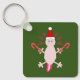 Esta divertida chaveiro de Natal de dois lados apresenta uma imagem de arte digital de um bonito Axolotl de Natal. O Axolotl é cor-de-rosa pálido com guelras rosadas brilhantes. Ele está segurando uma bengala vermelha e branca listrada em cada mão e está vestindo um chapéu festivo de Papai Noel branco e vermelho. O axolotl é do tipo Salamander do México. Há texto personalizado no verso para que você possa personalizar este design, como quiser.